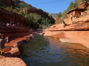 A paradise where you can slide down natural rock slides, in exquisite Oak Creek Canyon.
