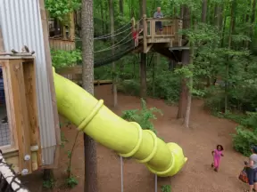 Magical spot with white sand beach on the river, coconut trees galore, views of the Ernest Lyons Bridge, and shady playground with tall, tall slides!