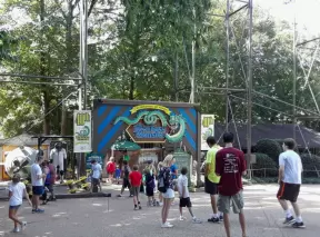 Large, shady theme park with huge rollercoaster and plenty of rides for kids.
