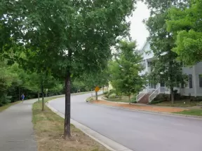 2.4 mile paved, intermittently shady greenway with varied sights!