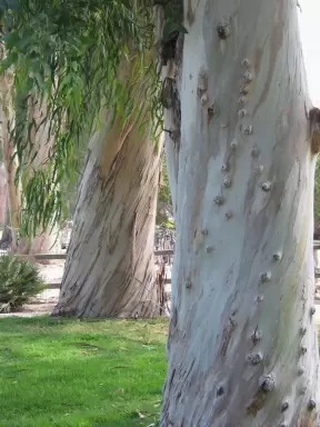 Shady walk among eucalyptus trees. Peaceful! Plus a cute playground tucked in a corner at the end.