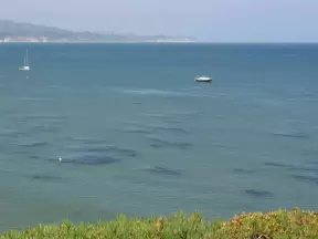 Walkway on the cliffs, in front of the resorts, that's bliss at sunset and in springtime when there are flowers galore. Take stairs down to a sheltered cove with tide pools.