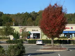 Grocery store shopping plaza that is cozy, with eucalyptus galore, not on the beach though.