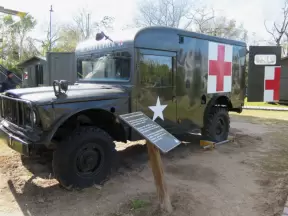 Military museum with jet fighters, World War I and II exhibits, historic and racing cars in Woodland Auto Display, bombs and missiles, communications equipment, and jeeps.