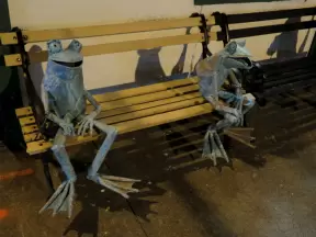 Hotel inside a giant atrium with tropical plants, fish, alligators, and decorations. ICE sculpture event in December.