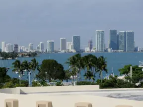 Fantastic, wide running path for 1.5 miles, along the river on the mainland, over the bridge, and all around Brickell Key. Very dense city atmosphere.