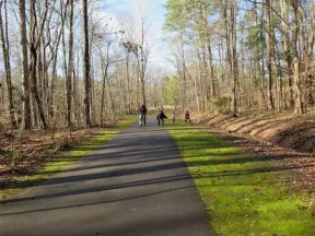 2.4 mile paved, intermittently shady greenway with varied sights!