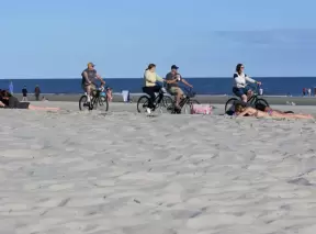 Beach where fishermen hang out on the jetty and surfers come to ride the waves at Jupiter Inlet.