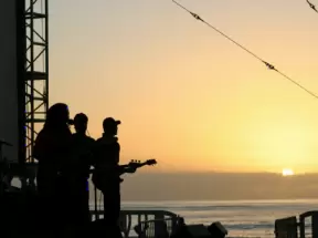 A wide stretch of beach with white sand, chilly winds, barking seals, and gorgeous sunsets.
