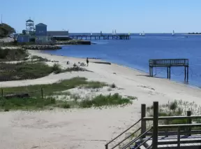 Beautiful beach, long pier, and mortar battery that used to defend the fort.