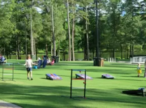 Large shady playground with fun three-person spinner swing. Bolin Creek bike path starts here.