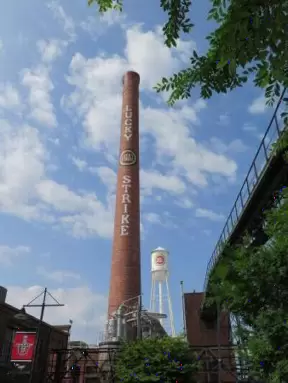 Unique redevelopment complex with man-made river, bee hive behind glass, colorful decorations, live music, and a few restaurants.