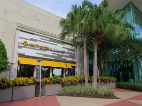 A happening spot with a sunken amphitheater by the water where kids can run in a splash pad and fountains are lit up at night. BurgerFi, Subculture Coffee, and a few restaurants.