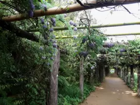 Formal series of themed gardens overflowing with flowers, sculptures, and fountains. On weekends, a model train garden that kids adore!