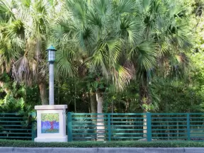 A short walk on a paved path through gorgeous tropical jungle and forest to a gazebo overlooking a small lake.