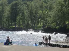 Small beach on the north end of Main Beach, with a little cave-like cove.