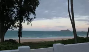 Corally beach with gorgeous views of Koko Head, Koko Crater, and Kahala Resort; plus an expansive lawn and bridge over a stream.