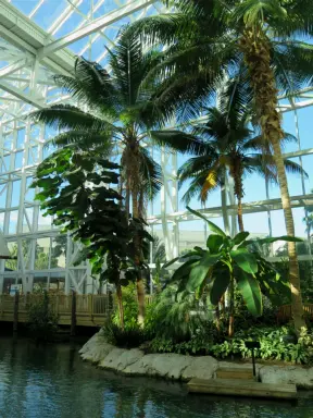 Glass-enclosed garden of unique and interesting tropical plants and flowers that the whole family loves! Gorgeous building on a hill, above formal gardens.