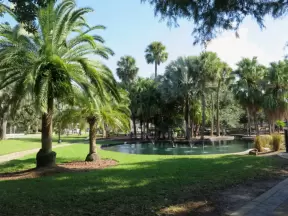 Beautiful park with lake, incredible cypress trees, playground, gazebos, winding trails, and 1920s mansion.