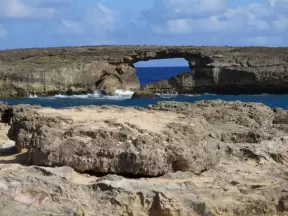 Limestone rocks that spurt water when the waves are 4-6 feet, a path through twisty trees to the beach, a visitor center, and a loop hike by the intracoastal.