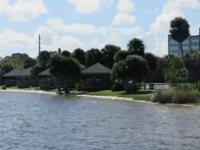 Fun spot on Lake Minneola, with white sand, palm trees, a bike path, a splash pad, and lots of water sports.