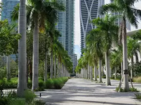 Fantastic, wide running path for 1.5 miles, along the river on the mainland, over the bridge, and all around Brickell Key. Very dense city atmosphere.