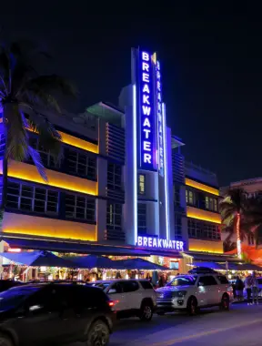 After sunset, check out the Art Deco buildings along Ocean Drive, lit up in neon!