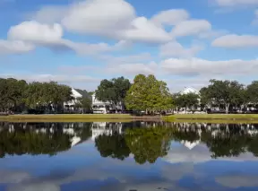 Walk past lake with cypress trees, and down three culdesacs with mansions.