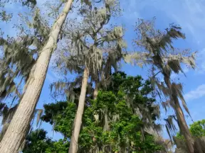 Short walk around shimmering lake with moss-draped trees, past Spanish mansions.
