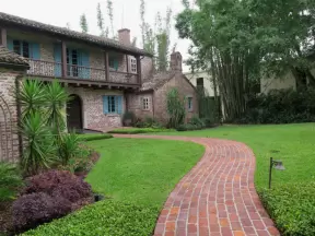 Short walk around shimmering lake with moss-draped trees, past Spanish mansions.