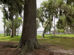 Beautiful park with lake, incredible cypress trees, playground, gazebos, winding trails, and 1920s mansion.