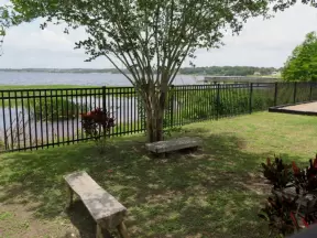 Gorgeous wetland area with wooden pier and promenade with blue benches. Steps from cute cafes and coffee shops of downtown Clermont.
