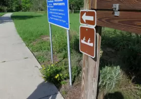 2.4 mile paved, intermittently shady greenway with varied sights!