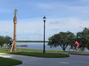 Fun spot on Lake Minneola, with white sand, palm trees, a bike path, a splash pad, and lots of water sports.