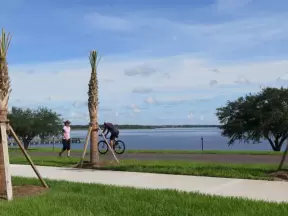 Gorgeous wetland area with wooden pier and promenade with blue benches. Steps from cute cafes and coffee shops of downtown Clermont.