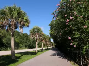 Walk past mansions, seagrape trees, palms, and flowers on Jupiter Island.
