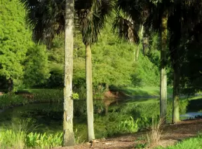 Tropical paradise with amazing trees, soft green grass, and woven huts shading picnic tables with BBQs that line the river, plus bike and kayak rentals. Beware alligators.