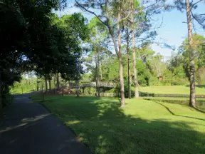 A wonderful running/walking path leads through jungly vegetation around three lakes.