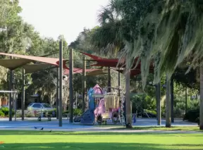 Beautiful park with lake, incredible cypress trees, playground, gazebos, winding trails, and 1920s mansion.