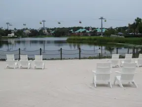 Walk around the lake, checking out the Skyliner gondolas gliding above you.