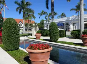 Walk past mansions in the shade of pine and palm trees on Palm Beach Island.