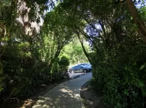 Sometimes shady path past forest and wildflowers between Disney Springs and Old Key West Resort.
