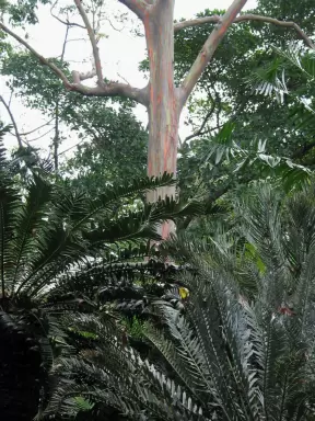 Incredible old trees from all over the globe, a stream, tropical plants, and flowers, all on a sloped plot of land.