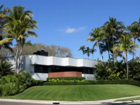 Walk along the sidewalk past mansions, tropical landscaping, and beautiful beach access points.