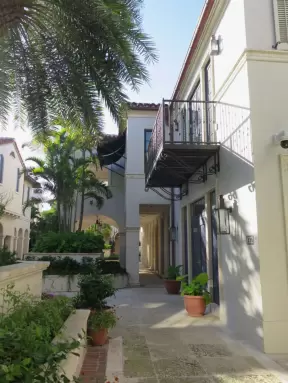 A sumptuous street with Spanish archways and courtyards and unique shops for the extremely rich.