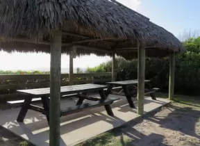 Tropical paradise with amazing trees, soft green grass, and woven huts shading picnic tables with BBQs that line the river, plus bike and kayak rentals. Beware alligators.