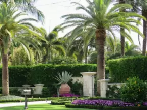 A tropical wonderland of palms, ferns, bromeliads, fountains, sculptures, rocks, ironwork gates, and pergolas, with the delightful scent of flowers filling the air.