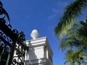 Walk past mansions in the shade of pine and palm trees on Palm Beach Island.