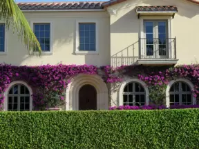 It's blissful to walk past hibiscus flowers, bougainvillea, coconut trees, tall hedges, and mansions, down to the sea.