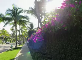 Walk past mansions in the shade of pine and palm trees on Palm Beach Island.